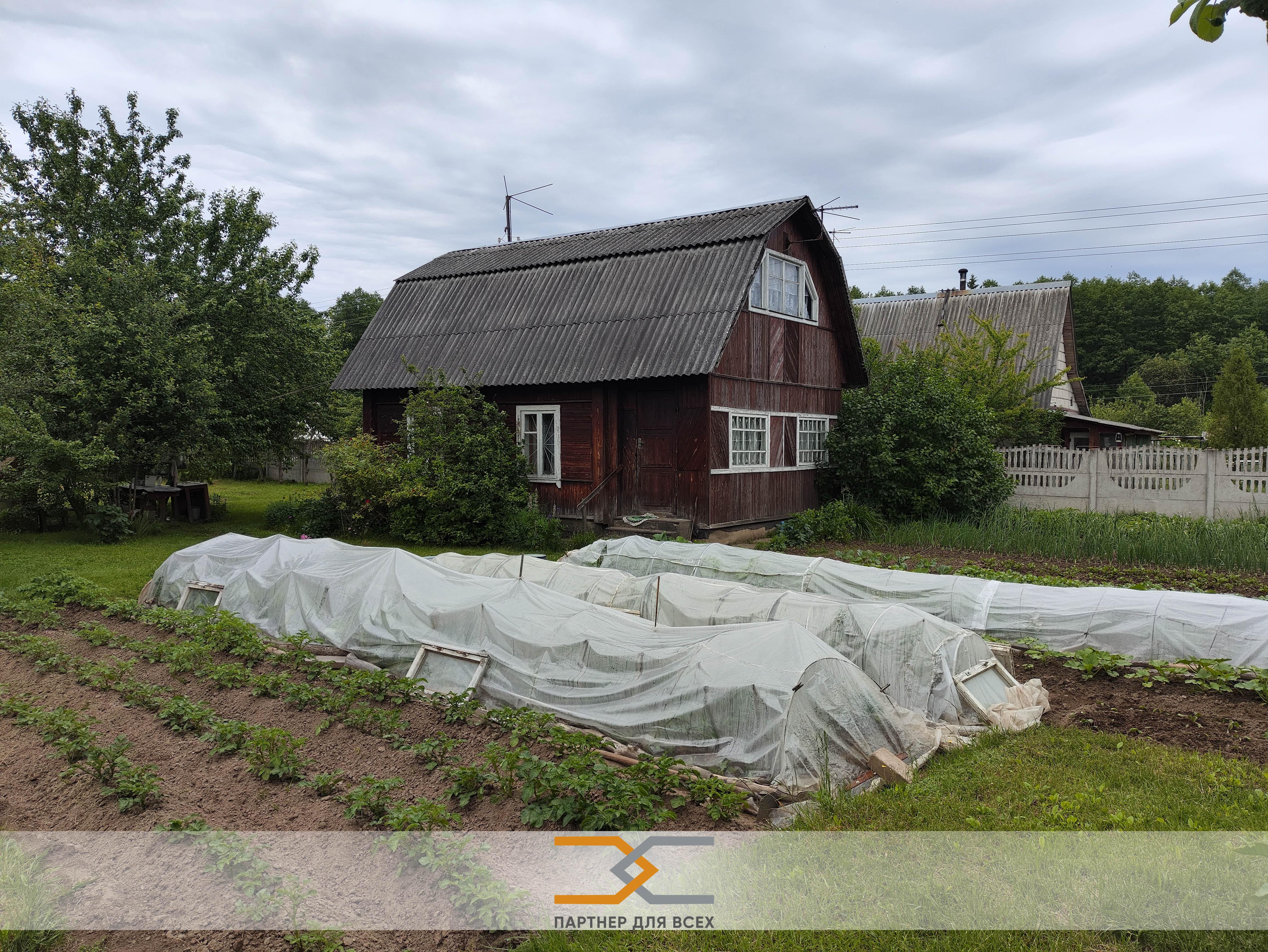 Продаётся 2-хэтажная дача в с/т "Турист-Узда", Дещенский сельсовет, Узденский район, в 40 км от МКАД.Участок: 5,61 сотки.На участке расположены двухэтажный жилой дом, хозпостройка, баня.Дом из бруса, отделан декоративной доской. Крыша шифер. Окна деревянные.На первом этаже дома расположены веранда, комната с печкой, выделенное пространство для сна и отдыха. На полу доска. Стены и потолок отделаны вагонкой.Из веранды лестница ведет на второй этаж.На втором этаже небольшой коридор и жилая комната с дверью. Пол черновая доска, покрытая ДВП. Потолок ДВП. Стены оклеены обоями. В коридоре по краям зоны для хранения.В хозблоке помещения для хранения инвентаря и туалетЕсть баня.Отопление печное. Печь с лежанкой и зоной для приготовления пищи.Вода колодец.Участок ровный, ухоженный.Растут плодовые деревья и кустарники.Забор со стороны проезда железобетонный, между соседями отсутствует. Ворота и калитка из металлопрофиля.К участку примыкает еще один участок (5,81 сотки), которым при желании можно пользоваться.Рядом лес.В соседних товариществах есть сезонные магазины. Также приезжает автолавка.До товарищества кроме авто можно добраться на общественном транспорте (примерно 500 м пешком).ООО «Партнер для всех», УНП 690665135, лицензия Министерства юстиции Республики Беларусь № 02240/321 от 02.12.2016, договор на оказание риэлтерских услуг № 38/7 от 27.06.2025г