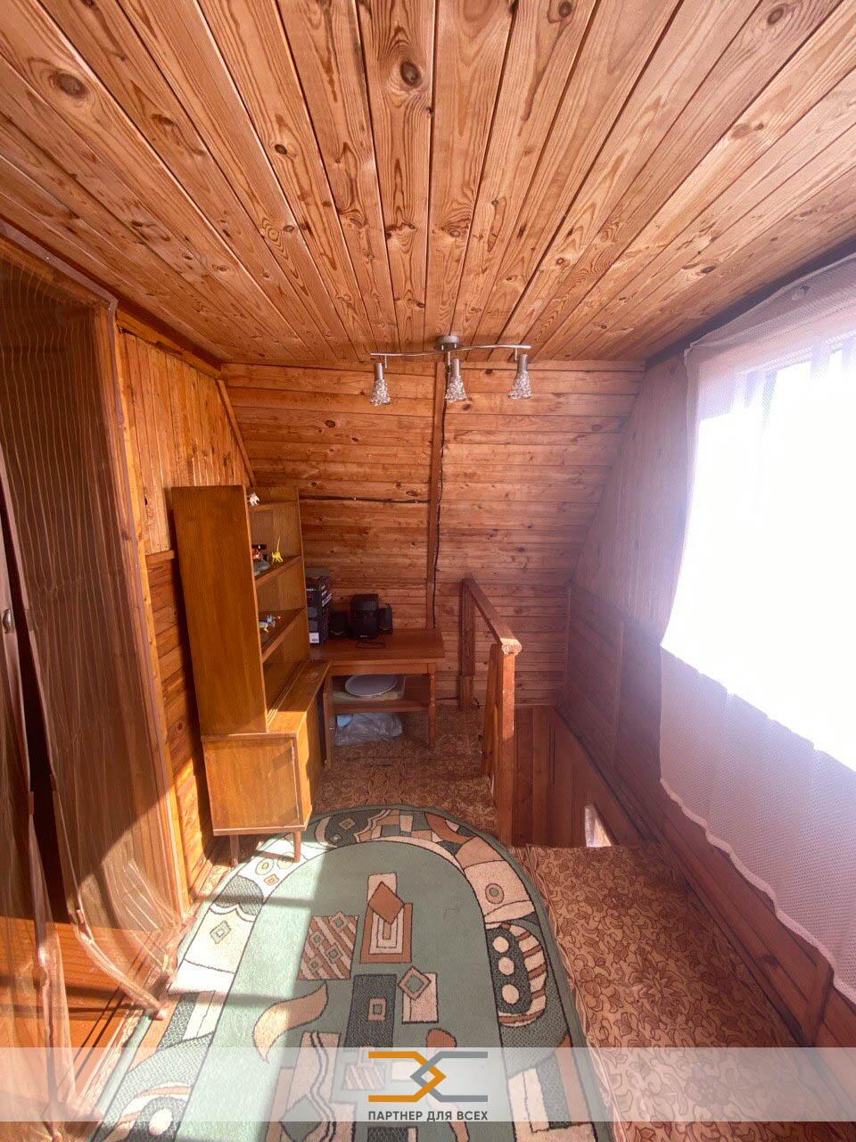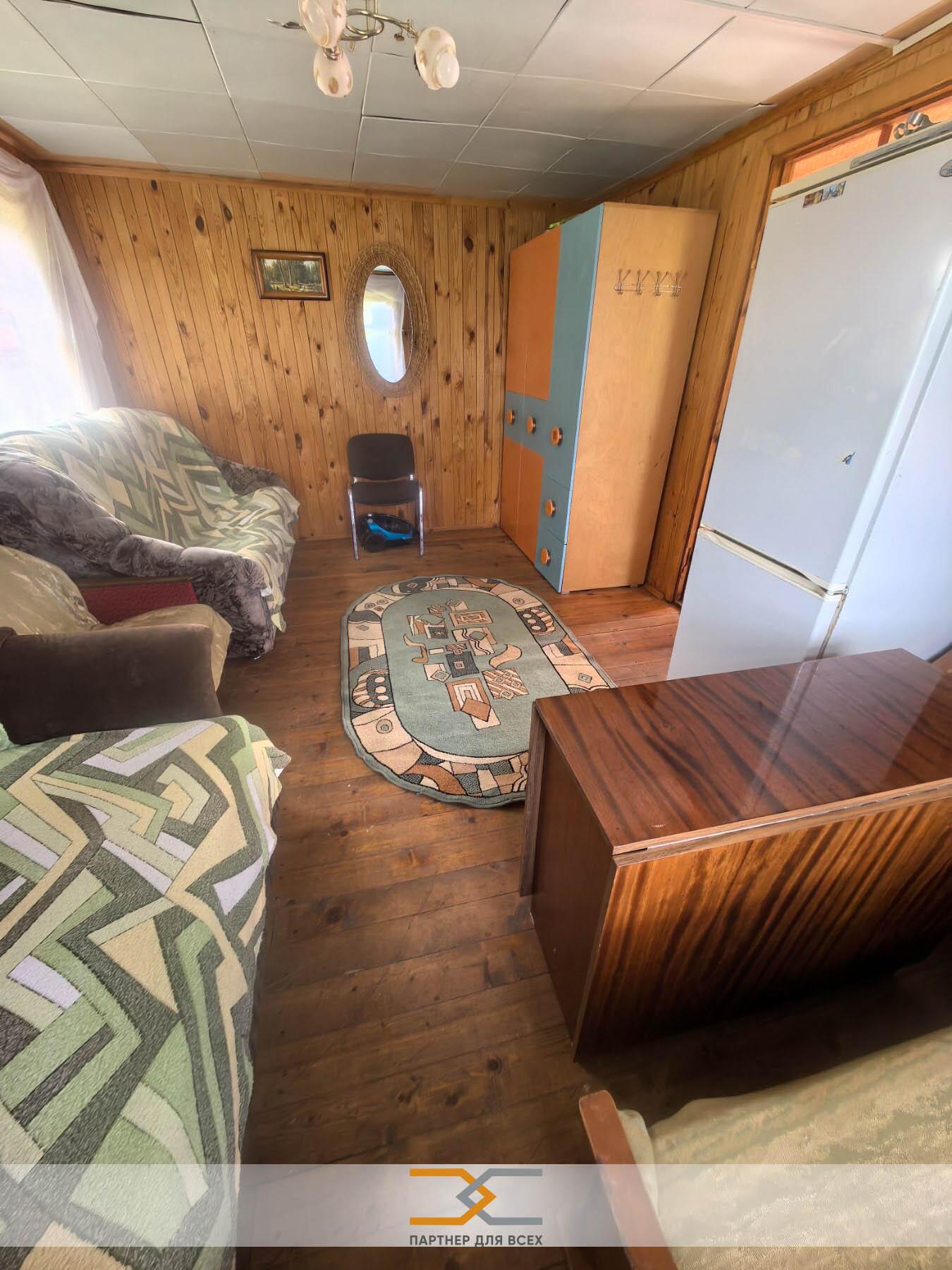 Продается добротный двухуровневый дом (дача) с земельным участком в с/т «Торфяник- 2008», Пуховичский район, 42 км от МКАД, Могилевское направление.Дом 2015 года постройки: сруб, обшит выгонкой снаружи и внутри. Общая площадь дома 48 м.кв.: две комнаты, кухня, веранда.Первый этаж: жилая комната, веранда, кухня, оборудованная шкафчиками, новая мойка, столешница Egger.Мансардный этаж: спальня, прихожая, балкон с навесом.Внутренняя отделка дома - вагонка; пол - доска; крыша - шифер.Водоснабжение: своя скважина со станцией водоснабжения, шлангом для полива растений. Вода заведена в дом: есть электронагреватель - холодное и горячее водоснабжение.Земельный участок 6,5 соток в частной собственности: ухожен, огорожен, прямоугольной формы!Ограждение: сетка рабица, металлический. На участке кирпичный сарай со стеллажами, помещение для хранения инвентаря, кирпичный туалет, летний душ, просторная беседка 15 метров с крышей из металлопрофиля (есть электричество для подключения акустики и других приборов).Ко всем хозпостройкам подведено электричество.Новые шезлонги, садовые качели, гамак, новый уличный рукомойник на 17 л воды.На участке выхожены плодово-ягодные деревья и кустарники: яблоки, черешни, вишня, малина, черная и красная смородина, слива, виноград, также сосна, ель, грецкий и лесной орехи,туи. Домик продается с мебелью: большая кровать, два дивана, кресло,стол-книга; бытовая техника: холодильник Атлант, пылесос Самсунг, микроволновка, генератор, газовая плитка, колонка. По договоренности триммер.Живописное место: рядом 7 минут пешком лес, в 10 мин ходьбы река Птичь с оборудованным пляжем и волейбольной площадкой, в 9 км Сергеевичское озеро.Остановка общественного транспорта - 10-15 минут пешком. Отличные подъездные пути: асфальтированная дорога почти до самого дома, 300 м гравейка. Отличное транспортное сообщение с Минском: круглогодично курсируют автобусы и маршрутные такси до станций метро Могилевская и Автозаводская; электричка до Руденска.Вся инфраструктура рядом: в 2 км гп. Правдинский: магазин Евроопт, почта, WF, кафе, а также Е-Доставка, 21 век в товарищество.Тихое, живописное место для отдыха!Показ в удобное для Вас время!Готовы к диалогу по цене!ООО «Партнер для всех», УНП 690665135, лицензия Министерства юстиции Республики Беларусь № 02240/321 от 02.12.2016, договор на оказание риэлтерских услуг № 50/7 от 03.04.2026г.
