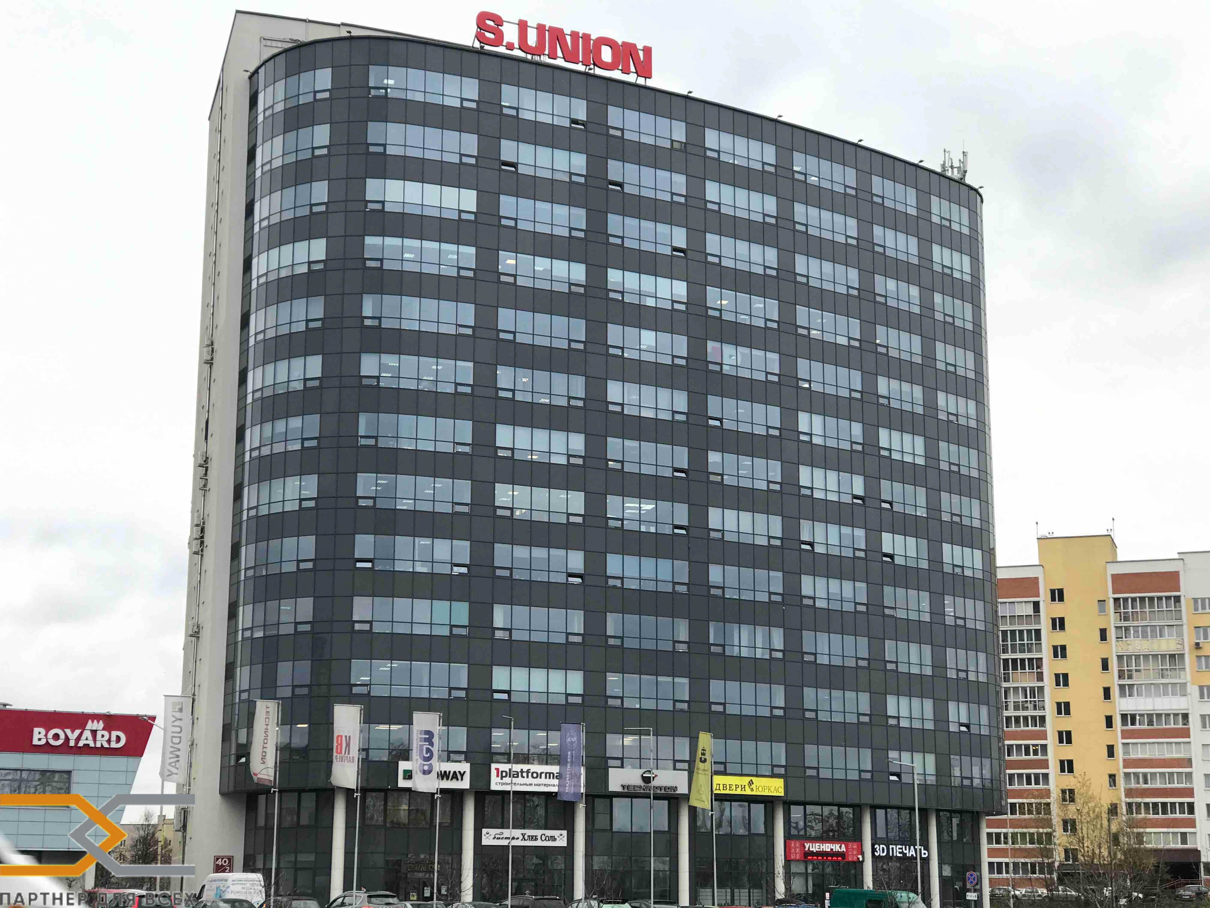 В БЦ «S-Union», который располагается непосредственно за МКАД по Партизанскому проспекту (Большое Стиклево), сдаются в аренду административные помещения от 80 до 177 м.кв..Расстояние от ст.м. «Могилевская» 300 м. Есть в наличии: 80,29 м.кв. офисный блок 10 этаж; 81,6 м.кв. офисный блок 7 этаж; 118,8 м.кв. офисный блок 8 этаж; 156,7 м.кв. офисный блок 10 этаж; 177 м.кв. офисный блок 14 этаж.Здание оборудовано лифтами, пожарной сигнализацией, приточно-вытяжной вентиляцией, отдельными санузлами, холодным и горячим водоснабжением, отоплением, телефонной и компьютерной сетью (оптоволокно 5 провайдеров), системой контроля доступа и видеонаблюдения, предоставляются юридические адреса, имеется собственная парковочная зона. Внутренняя отделка помещений – евроремонт.На территории имеются банкоматы, кафе, магазины.ООО «Партнер для всех», УНП 690665135, лицензия Министерства юстиции Республики Беларусь № 02240/321 от 02.12.2016, договор на оказание риэлтерских услуг № 11/2а от 16.10.2024г